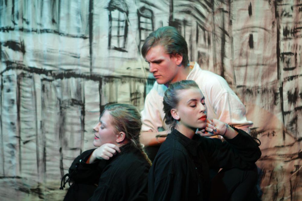 Goethes »Faust«, hier mit Frederik Bott, Sarah Feuchter (links) und Nicoletta Backhaus, hatte die Theater-AG vor vier Jahren auf dem Spielplan. Die Inszenierung wurde ebenso gelobt wie das aufwendige Bühnenbild, das beim Impro-Theater entfallen kann. ARCHIV-FOTO: SCHRADE