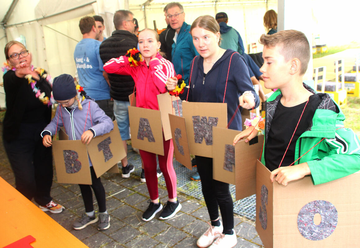 Die einst von Christel Bahnmüller-Luft ins Leben gerufene Spaßveranstaltung war die fünfte Auflage und gut hundert Teilnehmer im Alter zwischen sechs und 99 Jahren hatten sich angemeldet. Und trotz der katastrophalen Witterung waren die Mitspieler bestens gelaunt. Ziemlich viel habe gut bei den teils anstrengenden Vorbereitungen geklappt, nur das Wetter spiele einfach nicht mit, meinte Mitorganisator Lars Luft mit einem Augenzwinkern. Aber die meisten Spiele fänden unter einer Überdachung oder in der Nähe einer solchen statt. Was sie als letzte Sieger 2019 und seither als Sieger der Herzen erlebt hätten sei phänomenal, blickte André Fees kurz zurück und spornte die neuen Teilnehmer an. »Gebt alles und werdet neue Sieger der Herzen, und im nächsten Jahr dürft ihr die Stationen begleiten.«