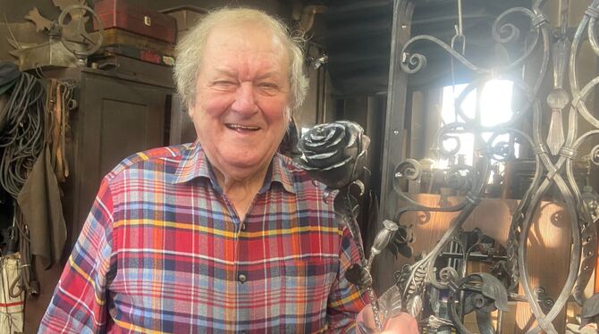 Eine Rose, die die Zeiten übersteht: Am Valentinstag hat Josef Hack, den die Trochtelfinger Mecki nennen, seinen 84. Geburtstag gefeiert. FOTO: BRÄUNINGER