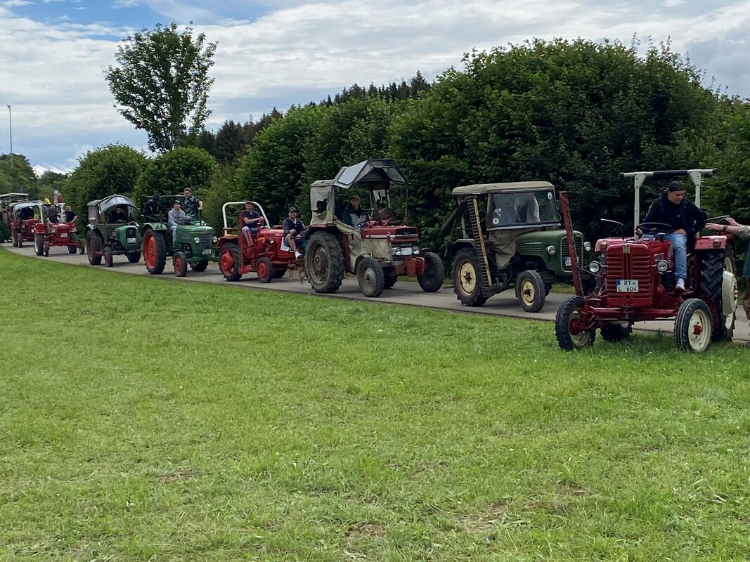 TROCHTELFINGEN-STEINHILBEN. Auch wenn witterungsbedingt zum vierten Traktor-Oldtimer-Treffen des Schützenvereins Steinhilben am Wochenende weniger weit gereiste Gäste gekommen waren, die lokalen und regionalen Fans der alten Schnauferl kamen am Sonntag in Scharen. Lagerfeuer und Public Viewing am Samstagabend, Erntebittgottesdienst mit Fahrzeugsegnung, Fahrzeugschau, Ehrenscheibenschießen und geselliges Beisammensein bei bester Bewirtung am Sonntag – dafür ist das Fest bekannt und dafür wird es geliebt.