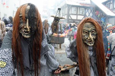 Schön gruselig: Nebelhexen aus Remmingsheim zogen ihren Feuerkessel durch Trochtelfingen.