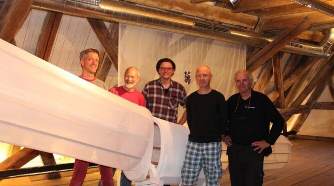 IG Kunstraum-Macher (von links) Martin Rost, Jochen Meyder, Helm Zirkelbach, Edgar Braig und Wolf Nkole Helzle. GEA-FOTO: GEIGER