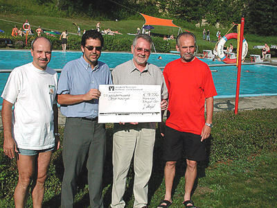 Peter Knupfer, links, und Jörg Schießl vom Förderverein, bei der Scheckübergabe an Bürgermeister-Stellvertreter Dieter Scheffold. Links: Förderer Rudolf Ott.