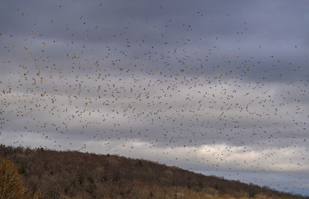 Als sich die Aufregung gelegt hatte und auch der Greifvogel nicht mehr zurückgekehrt war, flogen die Bergfinken in großen Gruppen wieder zurück in Richtung Buchenwald. »Ich habe versucht, die Größe des Schwarms anhand von Fotoauswertung zu ermitteln und halte es für möglich, dass es auch an die 100.000 Exemplare gewesen sein könnten«, berichtet die Fotografin. »Da die Tiere jedoch oftmals zu Tausenden aufflogen um wieder zum Hauptschwarm zurückzukehren, vermag ich die Anzahl nicht sicher zu beziffern.« (empul)