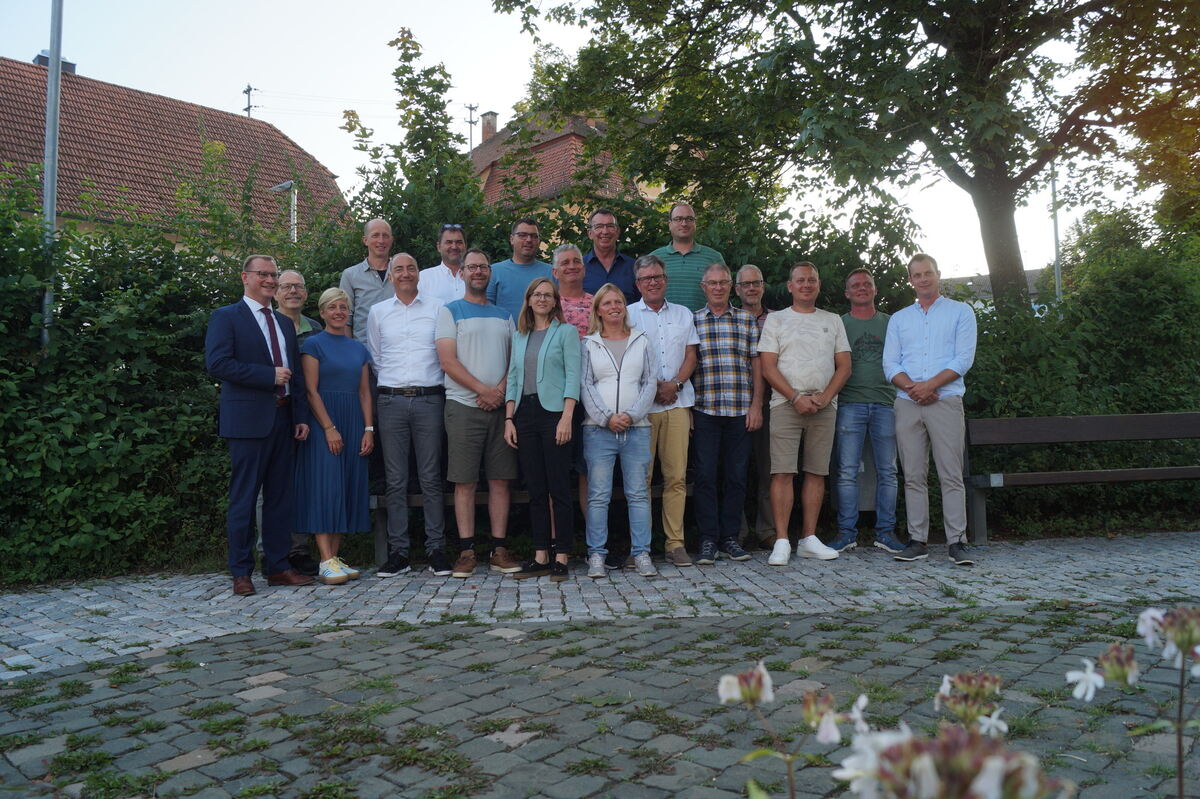 Bürgermeister Mario Storz (von links) mit seinem Gemeinderat: Tronje Marquardt, Daniela Halder, Stefan Glück, Samir Halabi, Ortsvorsteher Martin Mauser, Holger Eisele, Benedikt Wagner, Sina Freudigmann, Steffen Schmälzle, Judith Schwenker, Josef Leippert, Hans-Martin Hipp, Christoph Schmid, Anton Hummel, Ulrich Gundert, Christoph Rehmann, Dennis Knapp und Felix Kaufmann. FOTO: WURSTER