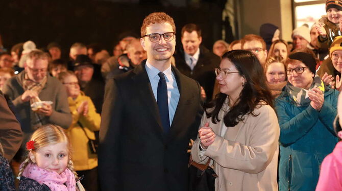 Simon Baier, der mit seiner Ehefrau Vera an der Seite nicht enden wollende Glückwünsche vorm Rathaus entgegen nahm, konnte es selbst kaum fassen und strahlte übers ganze Gesicht: »Das ist ein großartiges Ergebnis, ich freue mich riesig, ich bin unfassbar froh.« Nach einer kleinen Sport-Einheit hatte er den Wahlsonntag im Kreis der Familie verbracht, auch den Abend wollte er in dieser Runde ausklingen lassen: »Nur mit etwas mehr Genuss und weniger Anspannung.«