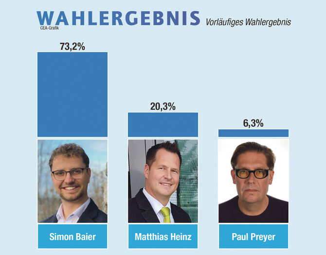 Die Wahlergebnisse sind über Ortsgrenzen hinweg eindeutig – Baier lag überall vorne –, die Einzelheiten dennoch einen Blick wert. Paul Preyer beispielsweise konnte in seinem Heimatdorf Ödenwaldstetten jeden fünften Wähler für sich gewinnen, mit 21,5 Prozent holte er dort sein bestes Ergebnis. Matthias Heinz, der seit acht Jahren mit seiner Familie in Bernloch lebt, hatte ebenfalls viel Rückhalt aus seinem Umfeld – noch mehr Fans hat er offenbar aber in Eglingen, wo ihn 34,8 Prozent der Wähler gerne zum Bürgermeister gehabt hätten. Simon Baier, der derzeit noch in Bondorf im Kreis Böblingen wohnt, als Bürgermeister aber in seine Heimatgemeinde Hohenstein zurückkehren will, holte in Oberstetten unfassbare 90,5 Prozent.