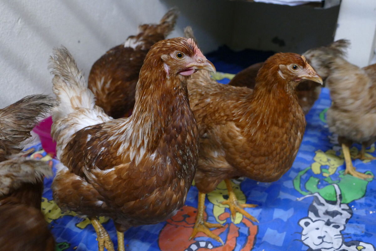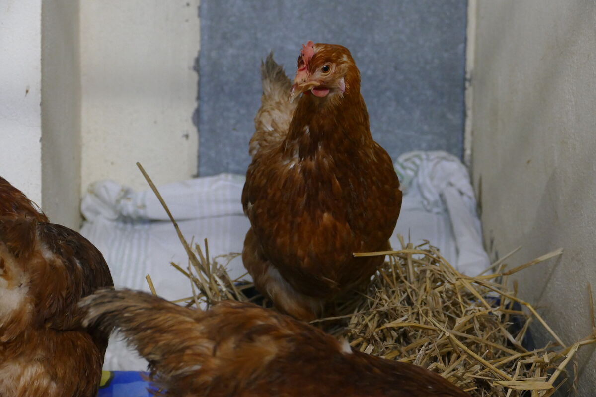 Die 62 geretteten Hühner wurden ins Tierheim Reutlingen gebracht. Bei einer Untersuchung von einem Tierarzt wurde eine extreme Abmagerung, zu lange Schnäbel und ebenso eine schwache Bemuskelung festgestellt, erzählt Atorf. Trotzdem haben sich die Tiere direkt nach der Ankunft förmlich auf das Futter und das Wasser gestürzt. Die Hühner sind im Hundehaus in acht Zwingern untergebracht und machen »einen Haufen Arbeit«, wie Atorf weiß. Pro Tag braucht es eine zusätzliche Fachkraft, die sich um die Hühner kümmert.