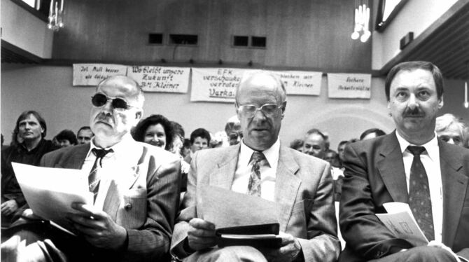 Die drei Bürgermeister Klaus-Peter Kleiner (von links), Wilhelm Hägele und Friedrich Bisinger setzten sich maßgeblich für die Umwandlung des Kasernengeländes in den Gewerbepark Haid ein. FOTO: PACHER