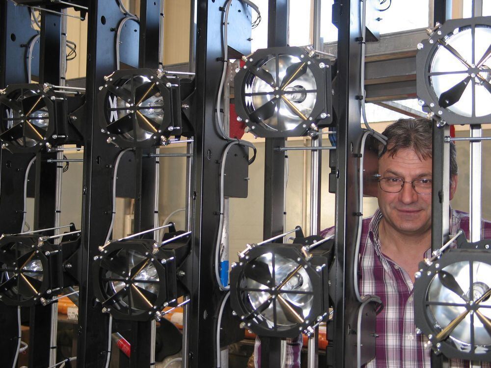 Harald Späth hinter der künstlichen Sonne - zwischen acht von insgesamt 108 Strahlern.