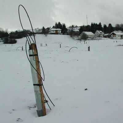 Wie moderne Landschaftskunstwerke ragen die Elektro-Anschlüsse für die künftigen Häuser im Undinger Baugebiet »Ottenrain« aus dem Schnee. Der Verkauf der 39 voll erschlossenen Bauplätze hat bereits begonnen.