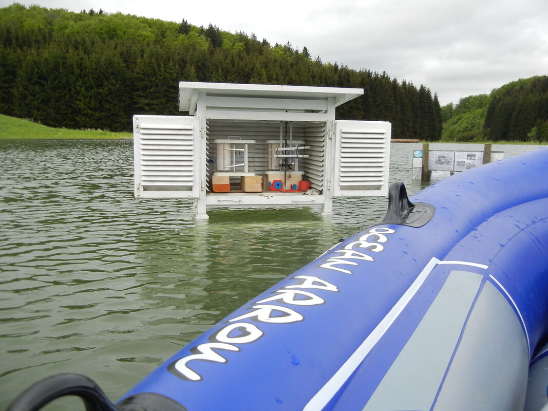 Roland Hummel musste 2013 mit dem Schlauchboot zu seiner Wetterstation paddeln. Die Gemeinde Sonnenbühl will einem Zweckverband »Hochwasser Laucherttal« beitreten, damit sie von solchen Ereignissen künftig verschont bleibt. ARCHIVFOTO: HUMMEL