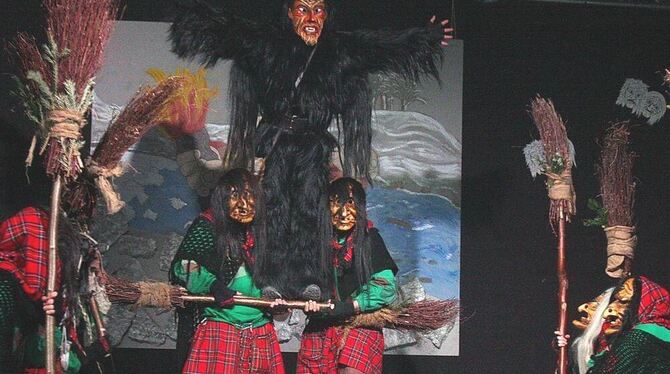 Die Ofterdinger Fürstenwaldhexen präsentierten beim Brauchtumsabend in der Undinger Steinbühlhalle ihren teuflischen Tanz.
