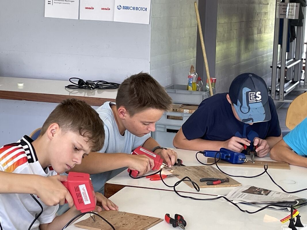 Fleißiges Löten ist notwendig, bis man seinen eigenen flinken Käferroboter beim Sonnenbühler Roboter-Cup ins Rennen schicken kann. Der Roboter, der den Parkour im Wettstreit von jeweils vier Startern am schnellsten durchläuft, kommt eine Runde weiter. Im Finale setzte sich der Roboter von Lenn Schrade durch.