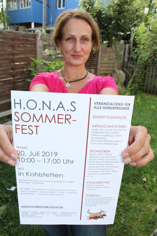 Das Sommerfest mit der Benefizaktion am Samstag, 20. Juli, im Engstinger Ortsteil Kohlstetten (bei der Firma Herbholz, An der Landstraße 17) kann von 10 bis 17 Uhr besucht werden. Der Eintritt ist frei. Es gibt außerdem ein Glücksrad, Bogenschießen, Getränke, Kaffee und Kuchen, Fruchtspieße und Hot Dogs. Eine Ernährungsberaterin für Tiere informiert, Daniela Honas hält einen Vortrag zum Hundeführerschein. (cofi)