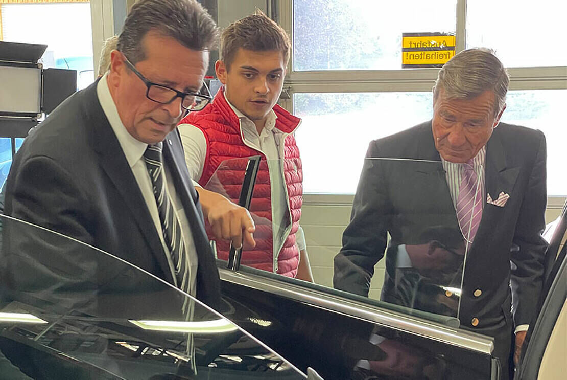PFRONSTETTEN. Wenn es um seine individuelle Mobilität geht, hat Firman-Chef Wolfgang Grupp klare Vorstellungen. Komfortabel und effizient muss das Fahrzeug sein. Als neuen Dienstwagen hat er sich einen vollelektrischen Mercedes EQS angeschafft. Dem fehlte allerdings ein entscheidendes Detail, auf das der Textil-Unternehmer aus Burladingen seit 47 Jahren großen Wert legt: der gegen die Fahrtrichtung eingebaute Beifahrersitz.