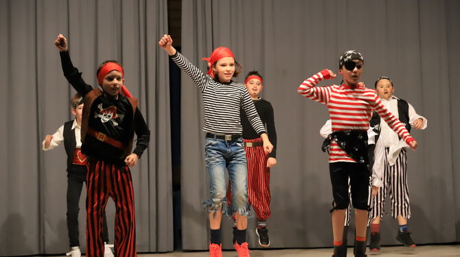 Nach der Begrüßung von Vorstandssprecherin Stephanie Werz sorgten die Kindi- und die Schulkinder in der proppenvollen Gemeindehalle für einen schwungvollen Auftakt. Merit Wezel und Petra Werz hatten die Beiträge mit den Kindern einstudiert. Danach waren die Bambini mit ihrem Bob Racer an der Reihe. Marcel Manz und Patrick Börner hatten die Leitung. Die Kindertanz-Gruppe von Hanna Schnitzler heimste für ihre Beiträge ebenfalls viel Beifall ein. Die Fußball-E-Jugendlichen kamen als Piraten verkleidet auf die Bühne. Sie führten den Wellermann-Tanz auf. Das Trainer-Trio Jochen Brendle, Holger Lengerer und Patrick Kuch betrieb danach Werbung in eigener Sache und lud weitere Kinder zu den Trainingseinheiten ein.