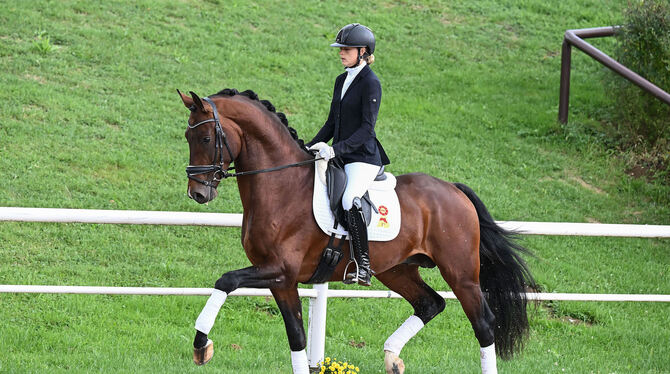 Nicht weniger als zehn S-Siege konnte Qualar aus der Zucht der Familie Götz feiern. Die Dressurreiterin Andrea Dulgos entdeckte ihn 2019 auf der Auktion in Marbach. Den sprunggewaltigen Schimmel Come Again, Überflieger der Auktion 2021, sicherte sich das Hofgut Albführen. Comme Cavelle, der im vergangenen Jahr in prominente Hände wechselte, triumphierte vor wenigen Wochen unter Richard Vogel mit der Traumnote 9,0.