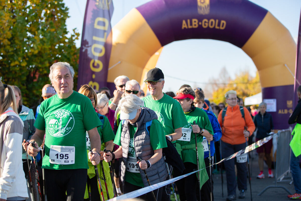 Zuerst kam Rainer Müller vom TSV Gomaringen ins Ziel, der die Kurzdistanz in 1:10 Stunden absolvierte. Der Gelegenheitsläufer wunderte sich etwas über die Zeit. Doch sein GPS-Tracker zeigte den Grund für den für ihn ungewöhnlich langen Lauf: Es waren 9,5 Kilometer statt der acht. 43 Sekunden später folgte von Andreas Wolf, vom Team »Hohenzollern – da läuft was«. Bei den zwölf Kilometern hatte Jürgen Rudolph vom FL Rommelsbach mit 1:23:49 die Nase vorn. Und auf den 16 Kilometern teilten sich Margitta Barth und Sandra Stahl mit 2:04:21 vom »Team Bauchspeck« den ersten Platz.