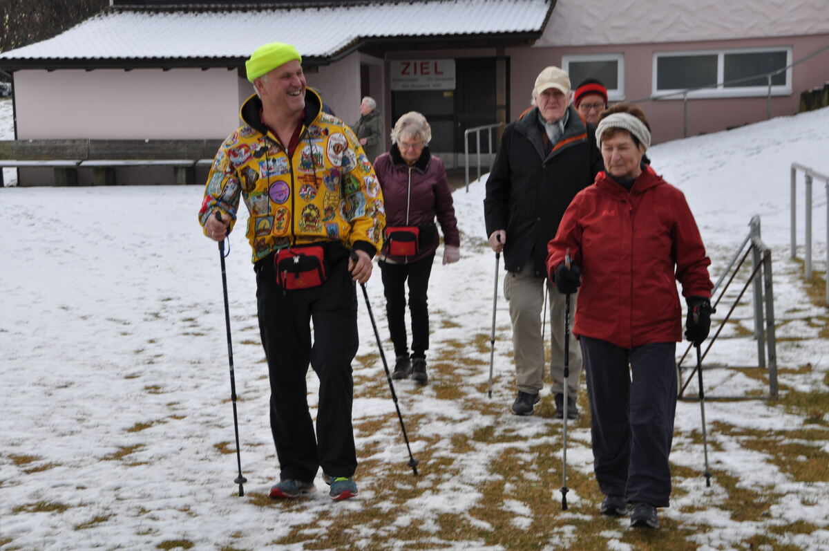 Die weiteste Anreise legten Wanderfreunde aus dem Hunsrück und Kreuzlingen zurück. »Vor allem sind viele Einheimische auch aus den Nachbarorten mit am Start, was uns natürlich besonders freut«, sagt Schiller. Viele kämen auch nur zum Mittagessen wegen der »super Schlachtplatte mit frischem Bauernbrot«. »Das ist auch ein Grund, hier mitzumachen, und darauf freuen wir uns schon«, sagt Rudi Struppel. Der Vorsitzende der Wandergruppe Mengen ist mit acht Leuten angereist, darunter sein Stellvertreter Karlheinz Lutz. Auf dessen Anorak sind Embleme seiner Stationen zu erkennen, an denen er als Wanderer auch im Marathon viele Kilometer gesammelt hat. Seit mehr als 30 Jahren sind die Mengener in Upfingen am Start wie Hermann Schraitle aus Harthausen bei Filderstadt. »Wir kennen die Strecke schon, und sie ist immer gut angelegt. Aber so wenig Schnee hatten wir schon lange nicht mehr.«