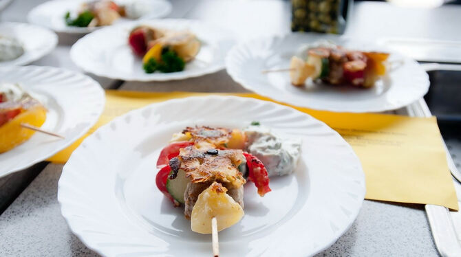 TROCHTELFINGEN. Dem Reiz von gutem Essen kann kaum jemand widerstehen. Deshalb war es gar nicht so verwunderlich, dass trotz kühler neun Grad und reichlich Wasser von oben gestern doch viele Menschen zum Nudelhersteller Alb-Gold bei Trochtelfingen gekommen waren, um bei »SWR 1 Pfännle on tour« beim Schaukochen zuzusehen, sich auf dem Bauernmarkt mit regionalen Produkten einzudecken und vor allem die Köstlichkeiten zu probieren, die acht Gastwirte aus der Region eigens für diesen Anlass kreiert hatten.