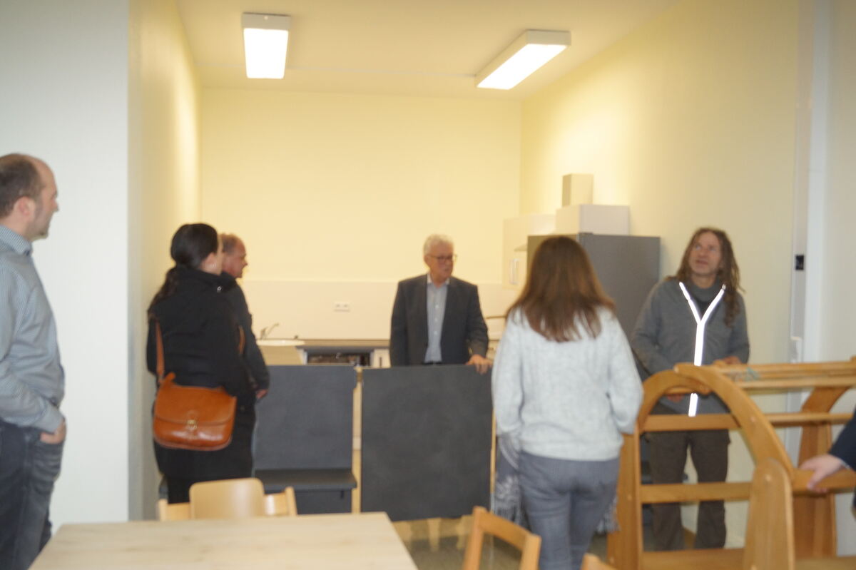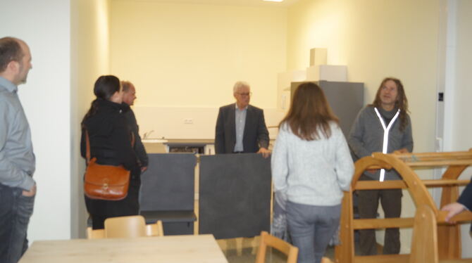 Bürgermeister Klemens Betz und der Gomadinger Gemeinderat besichtigen die neue Tiger-Gruppe.