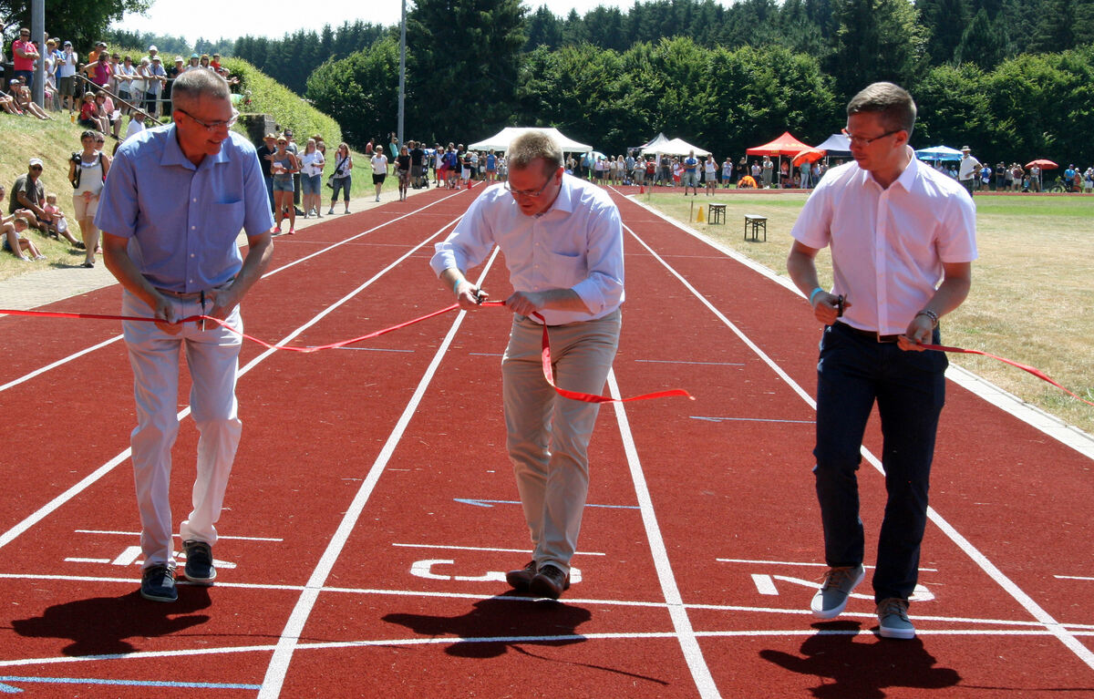 Bahnübergabe mit Stefan Häußler, Mario Storz und Christoph Niesler, von links.