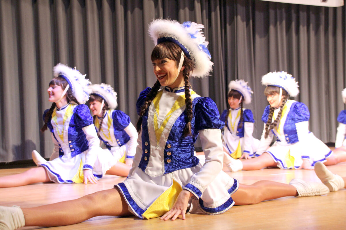 Sieben sportliche Mädchenriegen aus Steinhilben, Stetten unter Holstein, Großengstingen, Sonnenbühl, Inneringen sowie aus Königsheim und Wurmlingen bei Tuttlingen waren zum Wettstreit angetreten, bei der Gruppe aus Ringingen tanzte auch ein junger Mann mit. In zwei Kategorien zeigten die Tänzer fast fünf Stunden lang all das, was karnevalistisches Tanzen ausmacht. Auf der einen Seite, bei der Königsdisziplin Marschtanz, fast militärische Synchronität mit exakten Linien, Gleichschritt und – trotz Akrobatikeinlagen wie Spagat oder Rädchen und ungeachtet größter Anstrengung – ein bezauberndes Dauerlächeln.