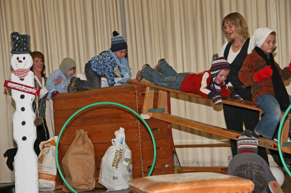 Ganz schön fit sind die Mädchen und Jungen, die beim SV Erpfingen ins Kinderturnen gehen. Was sie so alles drauf haben, führten sie jetzt mit ihren Übungsleiterinnen vor. FOTO: ERP