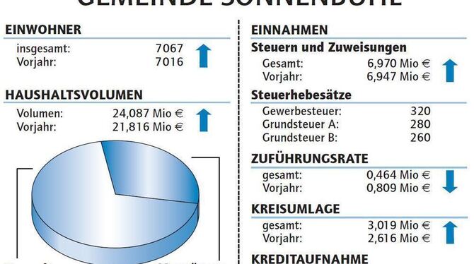 SONNENBÜHL. Kaum standen die Zahlen im Plan, musste Sonnenbühls Kämmerer Sebastian Herrmann korrigieren, weil das Land der Gemeinde knapp 55 000 Euro weniger zuweist als ursprünglich angenommen. Das macht sich gegenüber dem ersten Haushaltsplanentwurf bemerkbar. Das Volumen sinkt um diesen Betrag auf 24,09 Millionen Euro. Der erfreuliche Ausgleich in der zweiten Haushaltslesung am Donnerstag: Sonnenbühl wird nach Durchsicht der Interessentenliste in diesem Jahr voraussichtlich eine Million Euro mehr aus Grundstückserlösen einnehmen als im ersten Ansatz. Also 1,9 Millionen. Das erspart den Griff in die Rücklage allerdings nicht, deren Stand zum Jahresende Herrmann auf 8,7 Millionen Euro bezifferte.