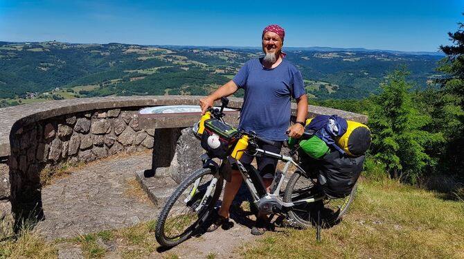 Justus Bronner mit dem Fahrrad auf dem Jakobsweg.