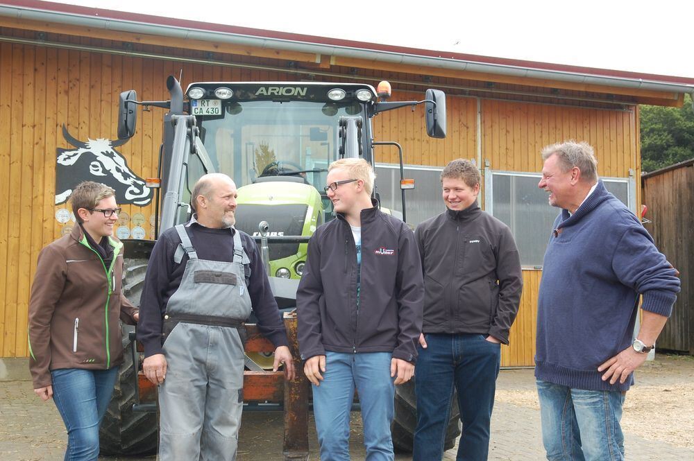 Ausbilder Erwin Pfeifle (zweiter von links) hat mit seiner Arbeitsanweisung an seinen Azubi Michael Schlafer (Mitte) »Du kehrst den Hof« die Lacher auf seiner Seite. Mit dabei Beate Pettenon, Sebastian Siegle und Dr. Joachim Maier (rechts). GEA-FOTO: GEIGER