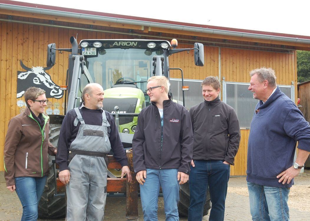 Ausbilder Erwin Pfeifle (zweiter von links) hat mit seiner Arbeitsanweisung an seinen Azubi Michael Schlafer (Mitte) »Du kehrst den Hof« die Lacher auf seiner Seite. Mit dabei Beate Pettenon, Sebastian Siegle und Dr. Joachim Maier (rechts). GEA-FOTO: GEIGER