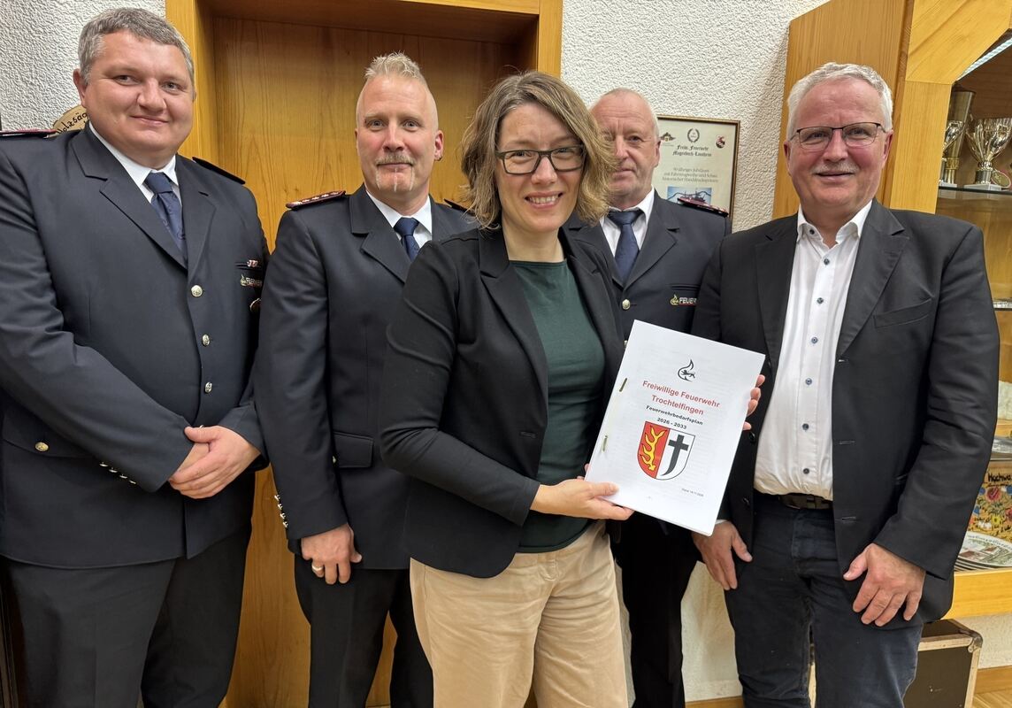 Der neue Feuerwehrbedarfsplan ist verabschiedet (von links): Armin Wahl, Kommandant Josef Brunner, Bürgermeisterin Katja Fischer, Ralf Herrmann und Ralf Hohloch.