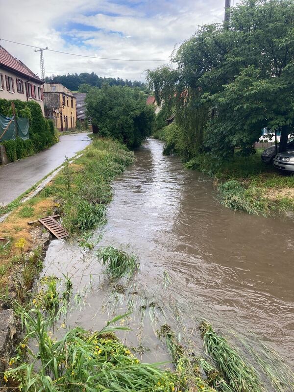 Mägerkingens Ortsvorsteher Ernst Zaia berichtet, dass auch hier die Feuerwehr ausgerückt war. An der Seckach wurden die Fallenstöcke im Ort gezogen, damit das Wasser schneller ablaufen kann. Einige Wiesen wurden dennoch überschwemmt. In der Ortsmitte habe es zudem Hagel gegeben. Gegen 17 Uhr schien die Gefahr gebannt gewesen zu sein.