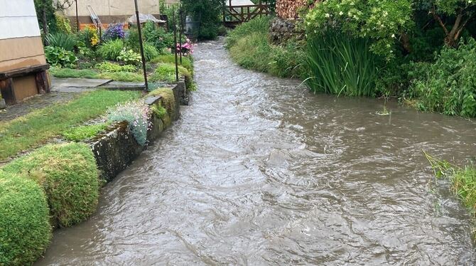 TROCHTELFINGEN. Am Freitagnachmittag gab es ein kräftiges Sommergewitter über der Alb, das in Trochtelfingen dazu führte, dass die Seckach anschwoll und zum Beispiel in Mägerkingen über die Ufer trat. Die Feuerwehr sei in Trochtelfingen ausgerückt, wo zwei bis drei Häuser betroffen seien, sagte Bürgermeister Christoph Niesler. Ob Wasser der Seckach oder überlaufende Kanäle der Grund waren, konnte er nicht sagen.