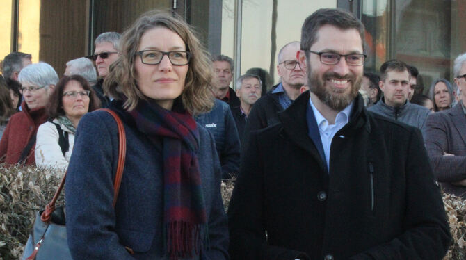 Katja Fischer und ihr Mann bei der Amtseinsetzung – noch vor dem offiziellen Teil.