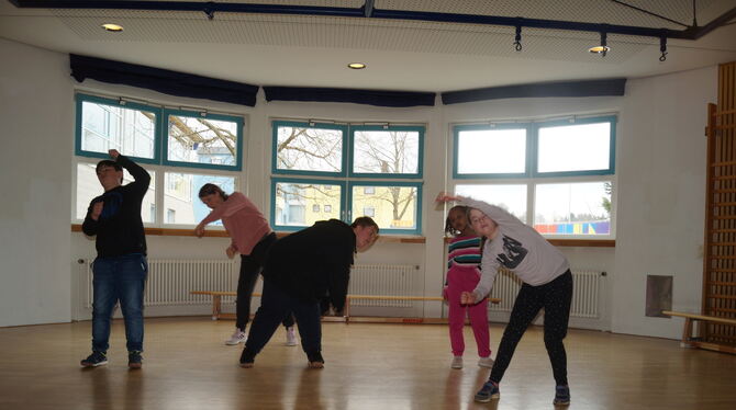 Chrissi, Nina Schmidt, Jasmin, Naomi und Marie beim Hip-Hop an der Haldenwangschule. FOTO: WURSTER