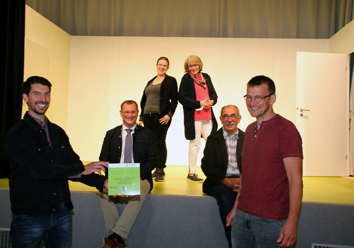 ENGSTINGEN-KLEINENGSTINGEN. »Mit diesem Projekt wird die ›Theaderkischd‹ wieder ins rechte Licht gerückt«, hob Bürgermeister Mario Storz hervor. Dank der Förderung von Leader Mittlere Alb konnte der TSV Kleinengstingen drei große Scheinwerfer an der Decke vor der Bühne anbringen, eine Strahlerleiste installieren direkt über der Decke zu den Brettern, die für Schauspieler die Welt bedeuten, und dazu noch eine Wand aus perfekt zueinander passenden einzelnen und mobilen Kulissenteilen anschaffen.