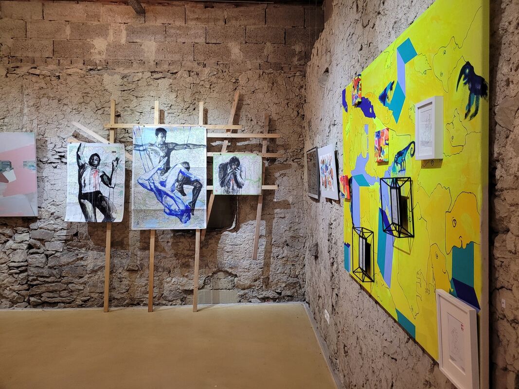 Anna-Maria Kursawe aus Leipzig und Kateryna Bortsova aus Charkiw lernten sich 2014 in der Künstlerkolonie in Kicevo (Nordmazedonien) kennen. Erst der Ausbruch des Kriegs in der Ukraine ließ ihre Wege sich wieder kreuzen. Kursawe erfuhr von den Problemen Bortsovas, die ihre Heimatstadt aufgrund der Kriegssituation verlassen musste. Sie bot ihr eine erste Anlaufstelle zum Wohnen sowie eine Artist-in-Residence-Möglichkeit in Leipzig an. Beide Künstlerinnen befassen sich in ihren figürlichen Arbeiten mit dem Thema »Migration«: Kateryna Bortsova wählt dabei Landkarten von unterschiedlichen Orten dieser Welt; Anna-Maria Kursawe stellt menschenleere, verlassene Räume und Architekturen in ihren Malereien dar.