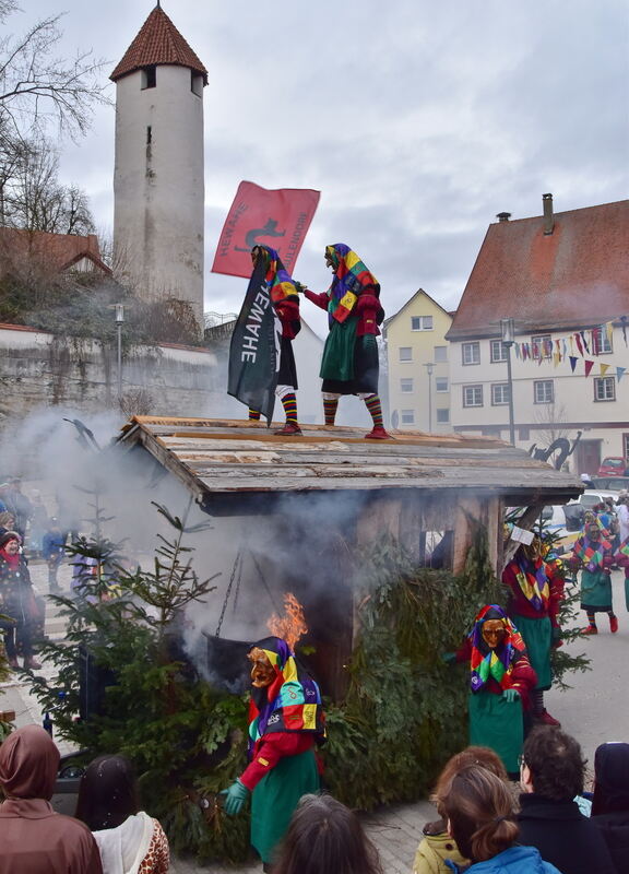 Die Aulendorfer Eckhexen köchlen mit Tannenreisig und offenem Feuer: Ihr Markenzeichen ist seit 1984 Hexenwagen.