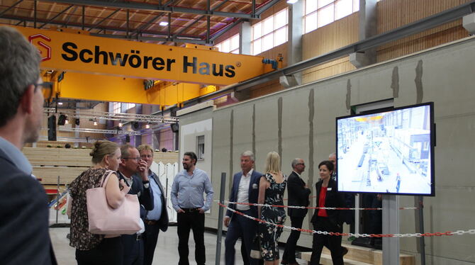 Im Mittelpunkt des Interesses stand die neue Werkhalle, in der Schwörer künftig seine Flying Space-Module produziert. FOTOS: DEWALD