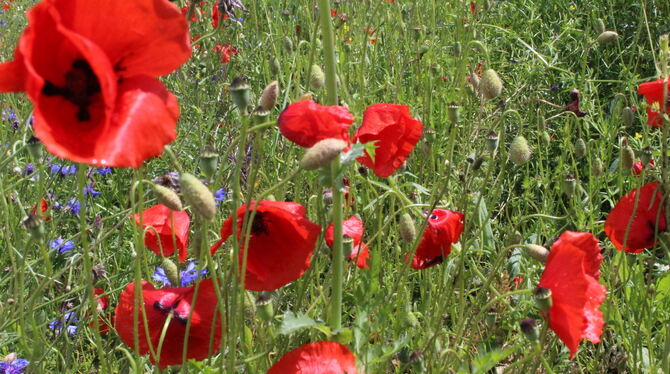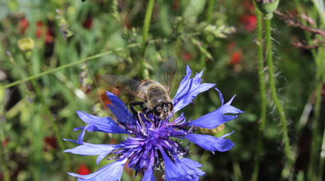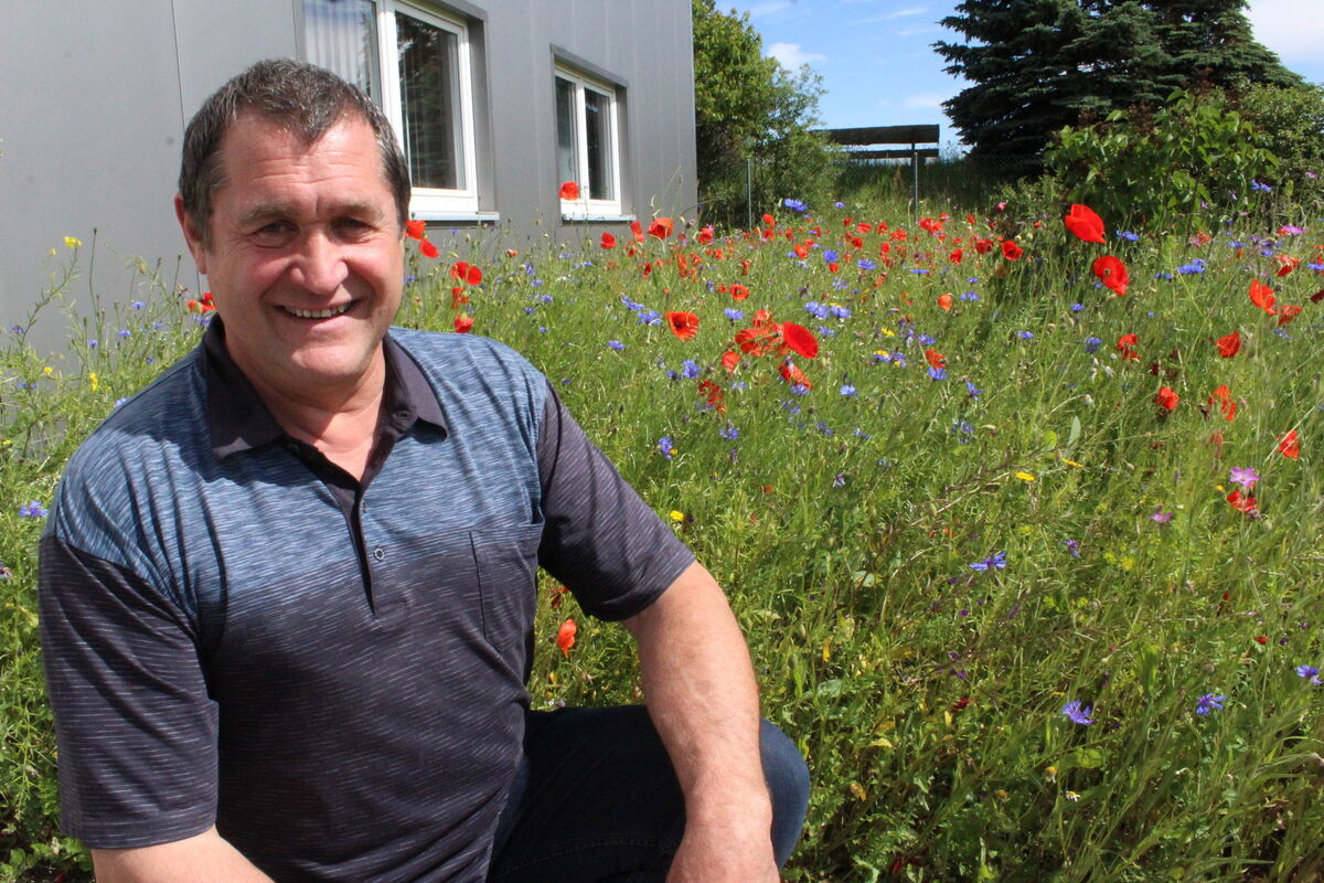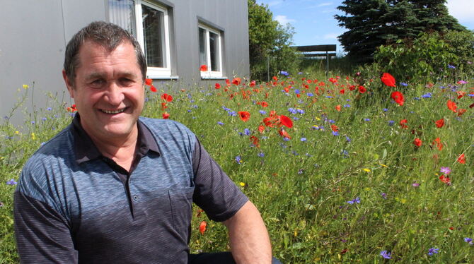 SONNENBÜHL. Im Gewerbegebiet in der Robert-Bosch-Straße herrscht Ordnung. Betriebsgelände reiht sich an Betriebsgelände. Rund um die Gebäude kaum ein Farbtupfer. Grünflächen akkurat gemäht. Doch rund um die Halle, in der die Firma Sepotec ihren Standort hat, ist es bunt. Roter Mohn, blaue Kornblumen. Und es summt. Gerhard Mader, Besitzer und Vermieter der Halle, hat sein Ziel erreicht.