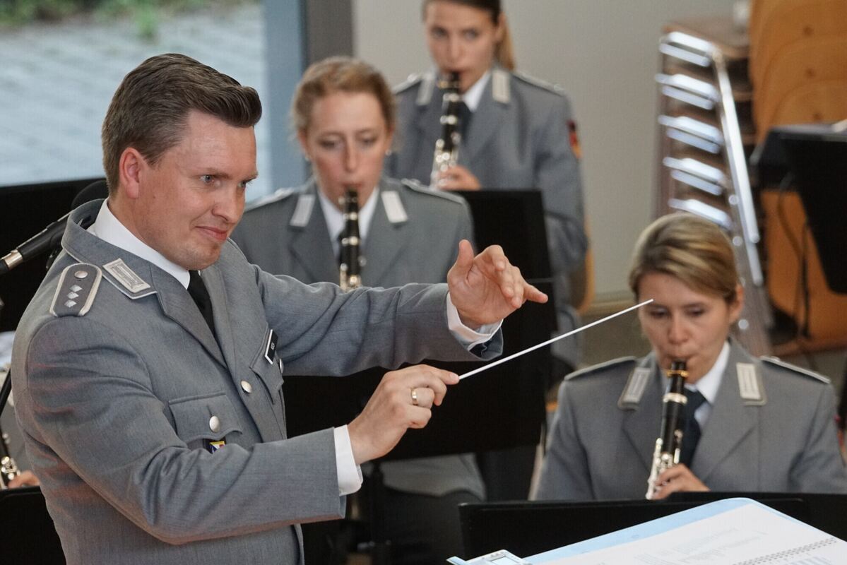 Hauptmann Dominik Koch dirigierte das Heeresmusikkorps Ulm. FOTO: LENK