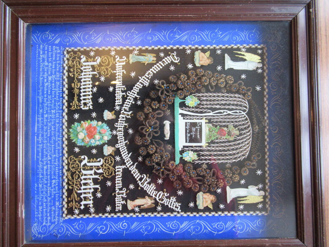 Walburga Enderle, eine Münsingerin, die von 1855 bis 1937 gelebt hat, war eine Künstlerin, was das Flechten und Formen und Sticken mit den Haaren ihrer Geschlechtsgenossinnen anbelangt. Zu ihrer Zeit war es Mode, aus den Haaren nicht nur Verstorbener kunstvolle Bilder zur Erinnerung herzustellen. Auch ein Gruß von der Liebsten an ihren Angebeteten wurde gerne mit einer Locke aufgewertet. Drei Haarbilder Walburga Enderles sind im Stadtmuseum in Münsingen zu bewundern und zählen zu den Lieblingsstücken von Yannik Krebs: »Ich finde sie unter allen Ausstellungsstücken mit am beeindruckendsten«, gesteht der 30-jährige Stadtarchivar. Und auch, dass nicht wenige Besucher des Hauses »völlig baff sind, dass man so etwas Schönes aus Haaren fertigen konnte«. (GEA)
