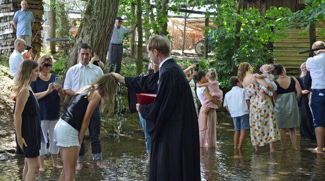 In Eningen wurde schon vor drei Jahren im Arbach getauft, andere Gemeinden ziehen jetzt überall nach. FOTO: KIRCHE