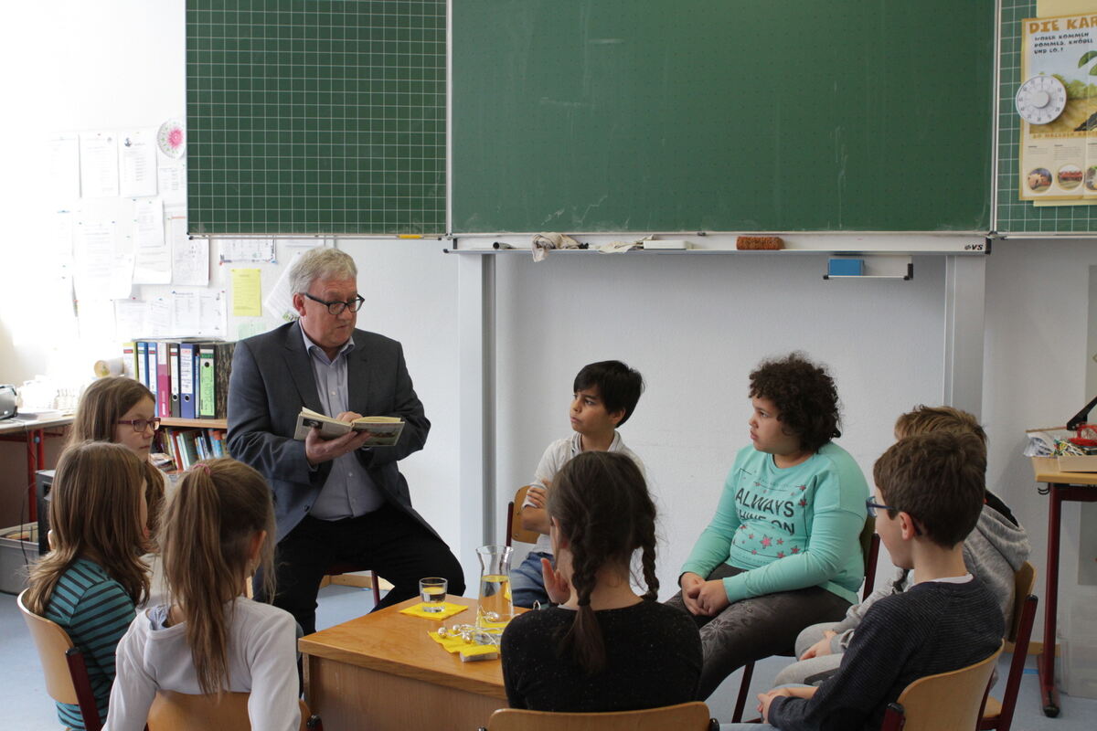 Die Schildbürger – das sind die, die sich dumm anstellen, obwohl sie ziemlich schlau sind: Bürgermeister Klemens Betz machte Kinder mit einem Klassiker vertraut. FOTO: MA