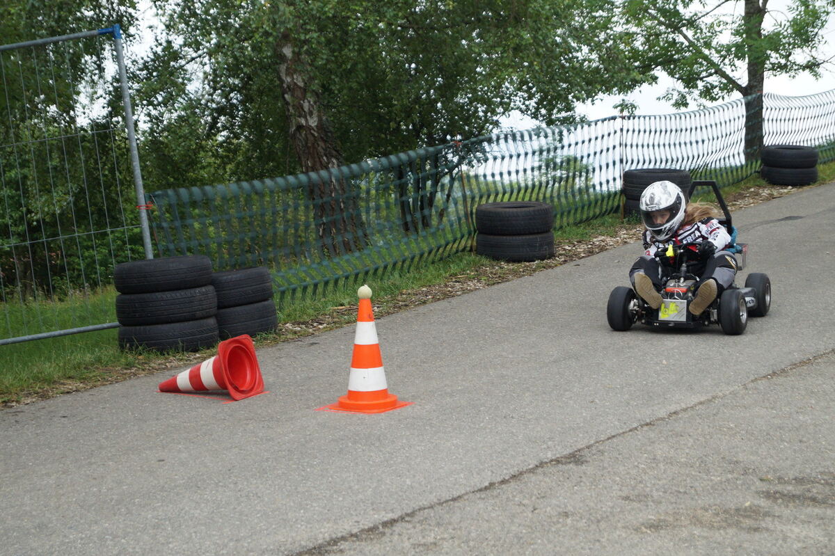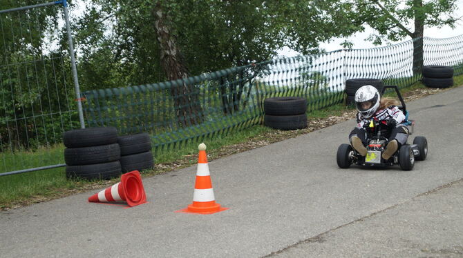 ST. JOHANN-WÜRTINGEN. Mit bis zu 70 Kilometern pro Stunde geht es durch die Streuobstwiesen oberhalb des St. Johanner Teilorts Würtingen talwärts 670 Meter hinab ins Tal zum Zieleinlauf, 68 Höhenmeter sorgen für den Vortrieb der Boliden. Das Gefälle braucht es auch, denn Motoren haben Seifenkisten und Bobbycars nicht.
