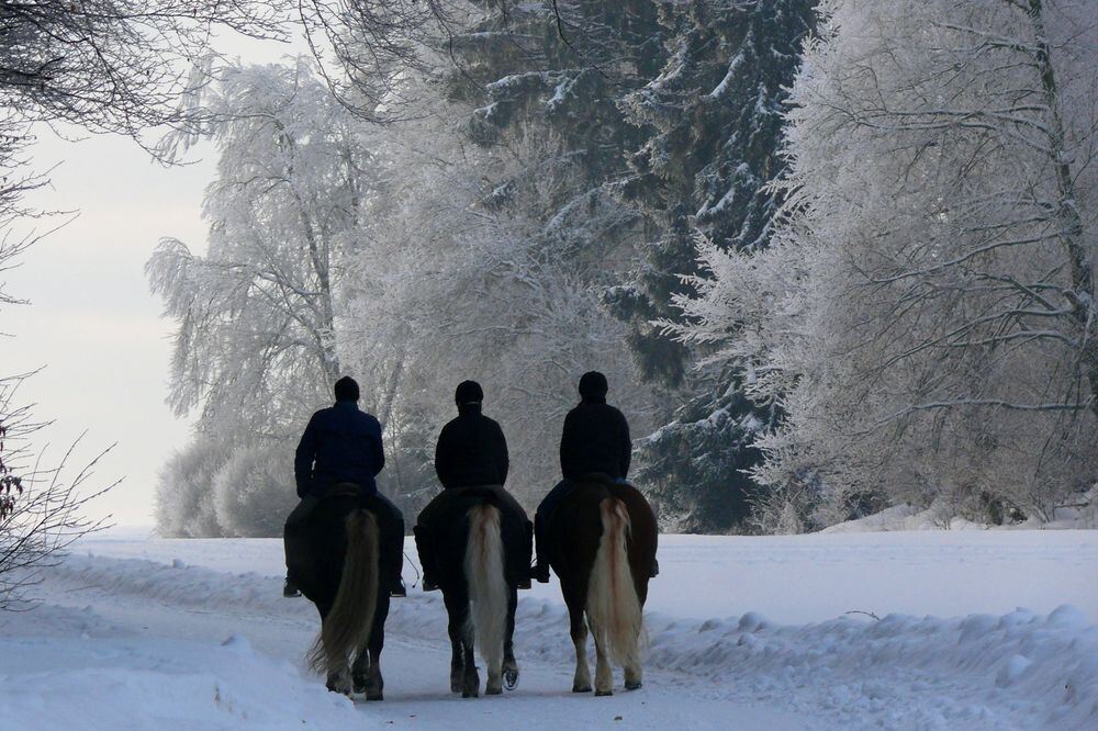 Insbesondere zu Pferd bietet der Winterwald faszinierende Naturerlebnisse. Foto: Scheub
