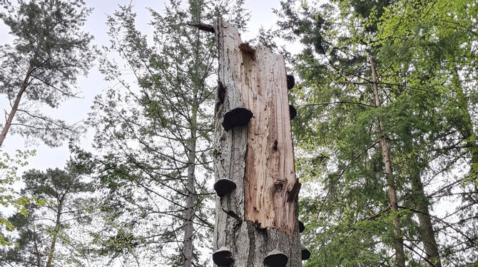 Ein Habitatbaum wie aus dem Bilderbuch: Im Hohensteiner Wald gibt’s einige Ecken, die die Gemeinde fürs klimaangepasste Waldmanagement anrechnen lassen kann. FOTO: SCHRADE